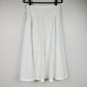 Maeve Anthropologie Skirt Size 14 White Eyelet Button-Front Drop-Waist Midi NEW