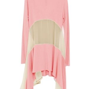 Allegra K Women Scoop Neck Tunic Mesh Shirt Hanky Hem Sheer Shirts Loose Blouses