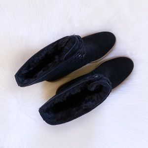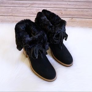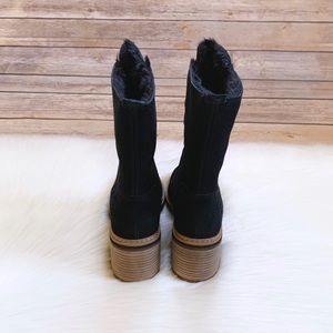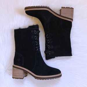 New In Box- Timberland Black Suede Sienna High Waterproof Mid Boot With Faux Shearling Lining, Lace Up Styling, EVA Midsole And Rubber Outsole. Shaft Hight 7”, Heel Hight 2.5”.