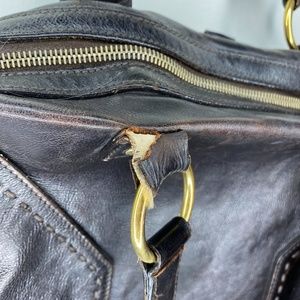This was my first Muse and she's been worn the most. The good news is, the lambskin creates a nice shine with wearing. The only issue with this one is one of the straps needs to be restitched (see photos) An easy fix and doesn't upset the rest of the integrity of the bag. All else is in good condition, lining in tact and ready for a loving home.