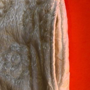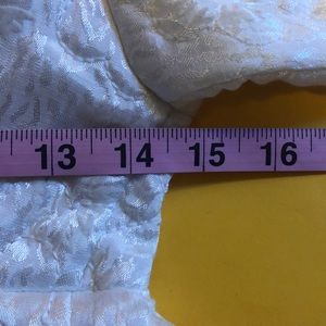 The dress is embroidered with flowers throughout the garment. Super cute and lovely with a sheened white throughout.