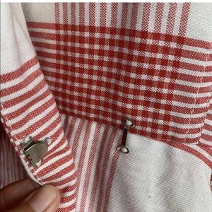 Fabulous vintage dress! This dress has it all: Surplice neckline, collared, sleeveless, pockets!!, belted, and snap/hook/button closures on skirt. 70% Cotton / 30% Polyester. Union Made in USA. New with original tags. Vintage size 12. Please note that vintage sizes run small. This would likely fit a modern 8/10. Please review measurements.