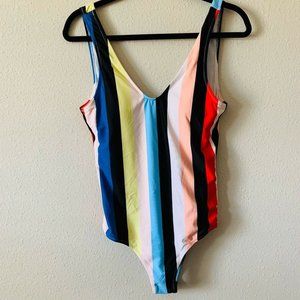CupShe Rainbow Striped One Piece Bathing Suit
