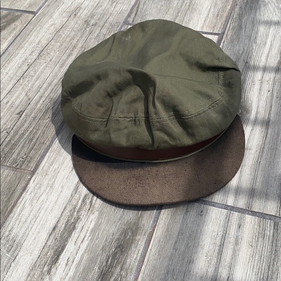 7 1/2 60 CM LARGE BRIXTON FIDDLER CAP in Army Green with brown leather band.