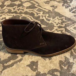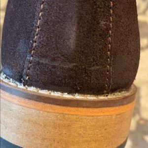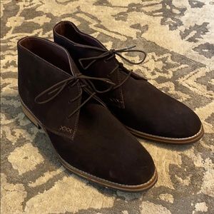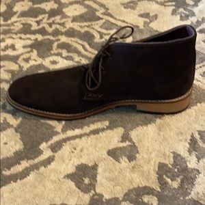 These ankle length boots are exquisitely made using the very best of leathers, and are handmade. Featuring a leather sock for comfort and fully leather lined. These boots are brown/black suede (please see photos).