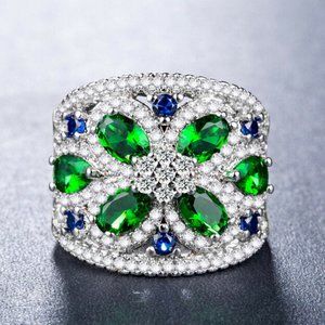 Gorgeous 925 Silver Emerald & Sapphire Ring New