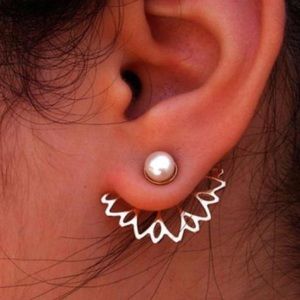 Elegant comes easily with these ear jacket earrings. Unique and full of life these earrings feature classy pearls with alloy flower ear jackets in silver or gold.