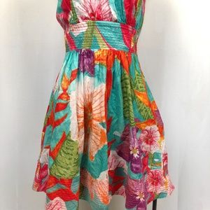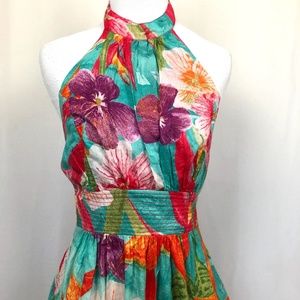 Farm Rio Halter Neck Mini Dress Floral Colorful Size Medium 100% Cotton