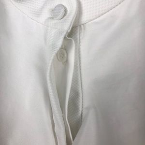 -Banded collar; covered button front