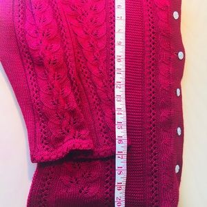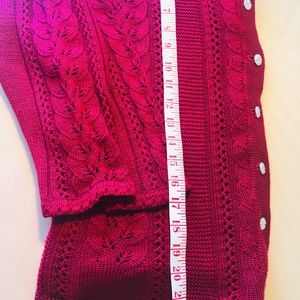 No tags, one button missing. Otherwise great condition. Amazing detail in knit and the color is rare! 22 inches long.