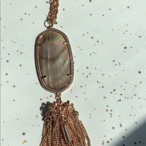 Kendra Scott Rayne long gold necklace with gold iridescent stone and tassel. Lightly worn, perfect condition.