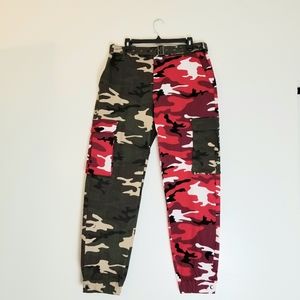 Stay on trend with these unique color block camo cargo pants. Designed in New York and just in time for the fall/winter weather.