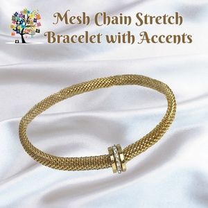 ๐๏ธ Mesh Chain Stretch Bracelet w/Clear Crystal Accents