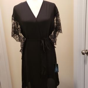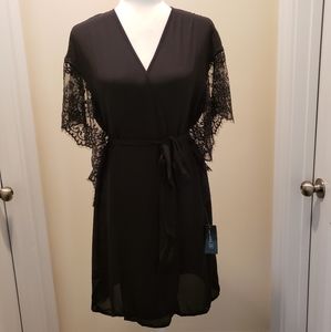 INC International Concepts Black Lace-Sleeve Chiffon Wrap Robe. Size XS & XXXL