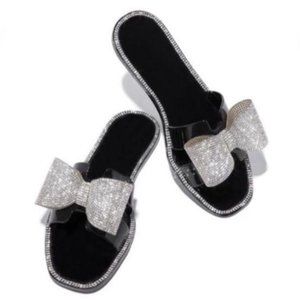 Embellished Bow Jelly Sandals in Black