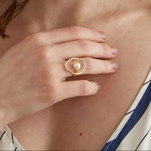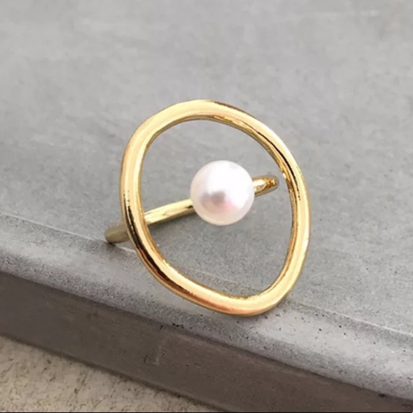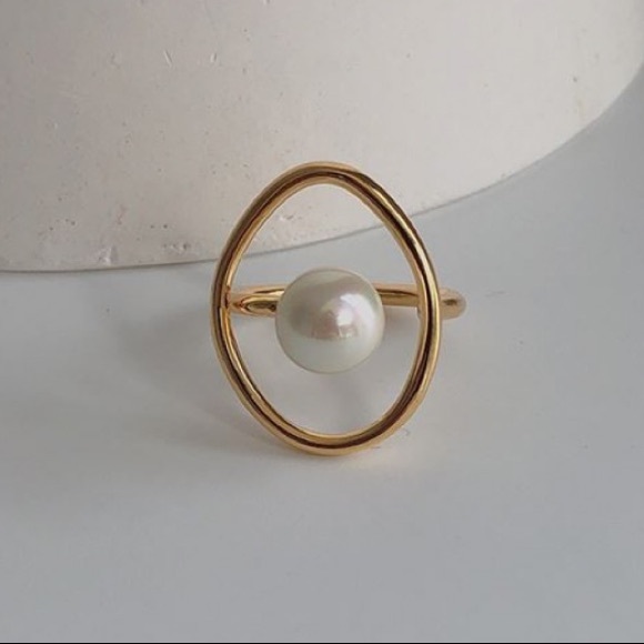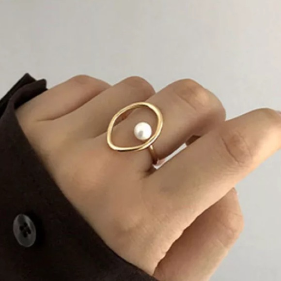 🤍Vintage pearl open gold plated ring