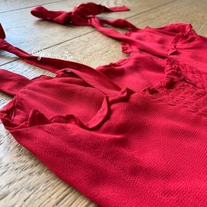Romantic & summery, This red mini dress has a sweetheart neckline & adjustable spaghetti dress that can be tied into bows. With a fitted bodice, this sleeveless dress has ruffled edges along the hemline that’s perfect for your next date night.