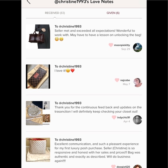 Showing on the listing a couple of my 5 ⭐️’s sales history is posted to show some of my poshmark sales with Love notes .