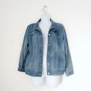 Size large one of a kind bleach distressed and hand painted jean jacket! Colorado flag hand painted on back! All buttons are fake buttons; jacket doesn't actually button up. Unique and a must have! Accepting offers!