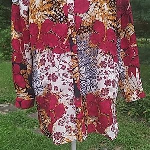 NEW/NO TAGS The Big Shirt trend is a favorite because it combines go-with-the-flow comfort and head-turning style! From Susan Graver. Sized Small. Color is "pink multi", shades of dark pink, black, gold & white.