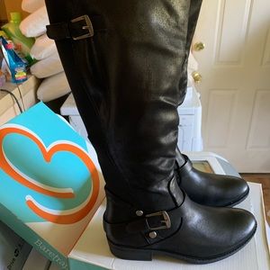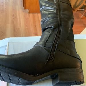 Great pair of riding boots with side zip and buckle detail. Medium calf width.