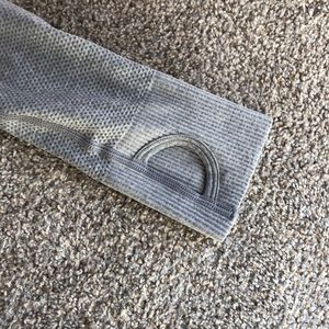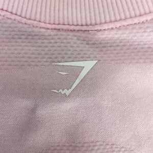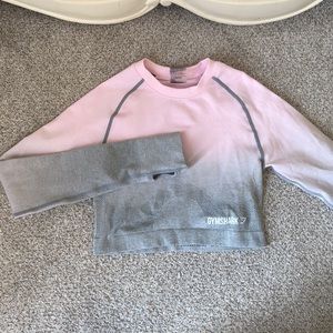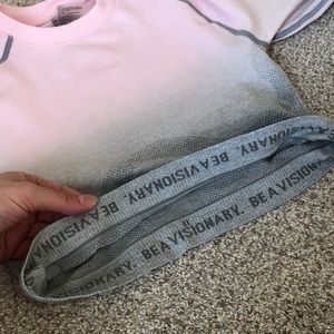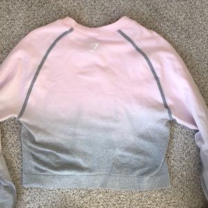 the CUTEST long sleeve crop top with a beautiful light pink/gray ombré and thumb holes! worn once and in great condition!! the logo is just a bit cracked. i absolutely love this top just never find myself wearing it :(