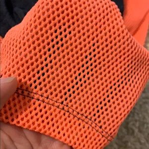 Women’s PINK tee size small. Loose fit. Dark gray with sheer fluorescent orange mesh on the side.