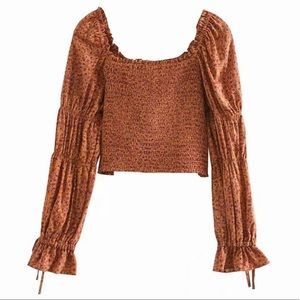 Gypsy Boho Floral Print LongSleeve CropTop Shirred
