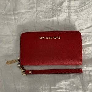 Red smartphone wristlet wallet from Michael Kors. Used a hand full of times, still in great condition, almost like new. Please feel free to message me with any questions!