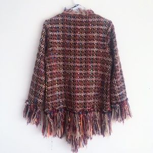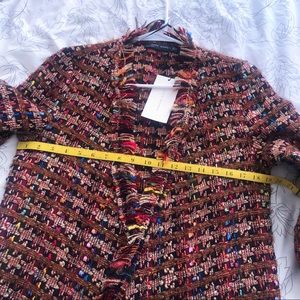 Zara Woman Colorful Tweed Fringed Blazer Sweater Jacket
