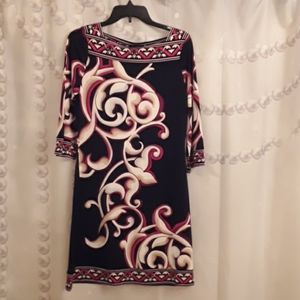 ABSOLUTELY GORGEOUS!! Black, red, and cream colored dress with unique designs. Practically new. 3/4 " sleeves. No stains, rips, or tears. EXCELLENT PRE-OWNED CONDITION 😊