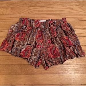 These stunning flowy printed shorts are looking for a new home. Featuring the warm color ways of reds, browns oranges, and purples, these adorable shorts can be worn a variety of ways. Pair them with a solid crop top or with your favorite bodysuit, these shorts will become a closet staple. These have only been worn two times and are in near pristine condition.