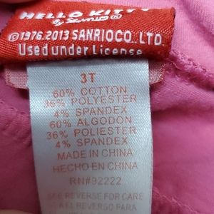 Hello Kitty girls size 3T biker shorts with ruffles. 60% cotton, 36% polyester, 4% spandex. Good used condition.