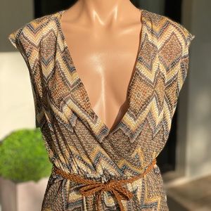 Great print! Great quality! Has a soft lining/slip inside that cannot be removed. Slightly shorter in front (at bottom). Low cut. Cute woven belt but would look AMAZING with a thin Gucci belt.