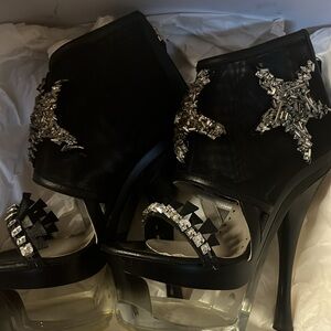 ‼️AUTHENTIC ‼️NWT‼️VERSACE Starfish Mesh Cut Out Booties Size 7 Black Platform