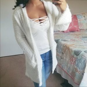 ❌SOLD❌PLUSH in Snow- Popcorn Knit Cardigan