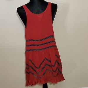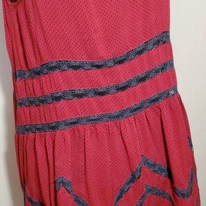 Red and black polka dot with lace inset throughout & a ruffled hem.