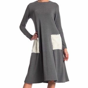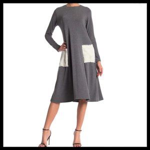 Go Couture Gray and White Crew Neck Dress NWT