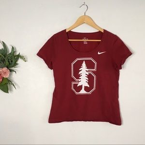 Stanford University woman’s swoop neck tshirt with famous “S”with Tree in the middle.