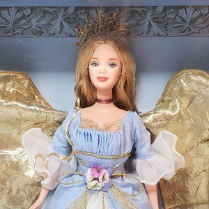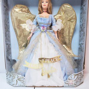 NIB: Timeless Sentiment Series- "Angel of Peace" ('99 blonde) A gentle reminder that peace is hidden in every moment if only we will be still enough to discover it. Irresistible in a heavenly blue gown, her angel wings seem to reflect the golden light of an early morning sunrise. The certificate of authenticity is included. Vintage. In mint condition. **Disclosure: the original box shows light storage wear/scuffs & a crack on the side plastic cover. Please see pictures.