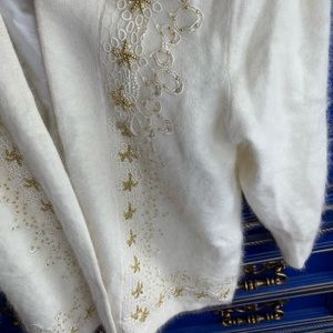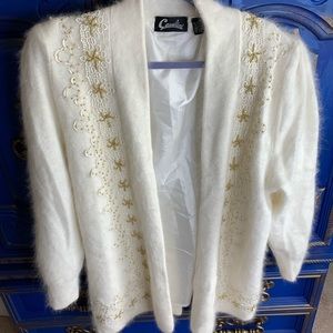 Vintage Cavalini Angora Blend Cream Beaded Sweater Jacket Top Open Cardigan MED. Shipped with USPS.