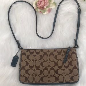Coach crossbody bag pre-owned good condition still lots of life left! Madrid leather and fabric , clean inside top zipper closure with one practical pocket inside, clean inside.smoke free home.