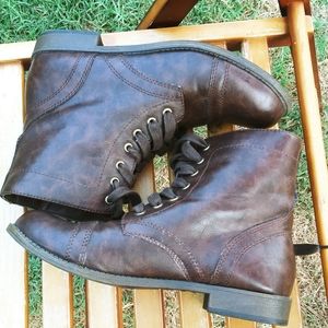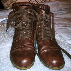 Gently used ankle boots size 8m. Picture will show how great of conditions. Lace up booties. Man made leather.