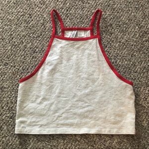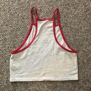 High neck halter-style crop top. Light heather gray with red contrast. Size M, from Divided by H&M. Good used condition, just didn’t fit me right