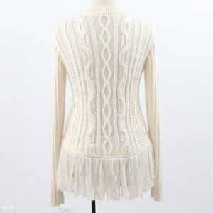 Tory Burch mid-weight cable knit crew neck sweater. BEST bc wool blend - warm but can wear year round!! Long sleeve w 6.5" fringe hem. Relaxed fit. Cozy textured pullover. Chic & comfy staple & v trendy for Fall 2020! $498 new. EUC.