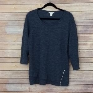 EUC Cute lightweight sweater, cross cut hem, zipper detail, blue. Christopher and Banks, petite XL