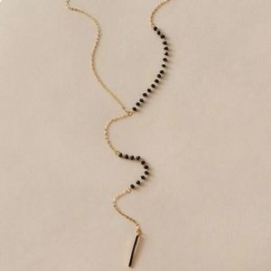 Gold colored bar and bead necklace