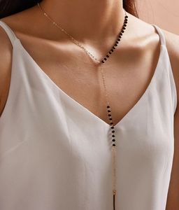 *Dina* Black Bead Long Necklace