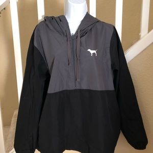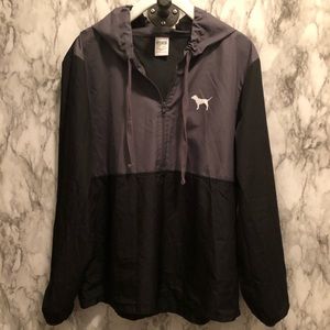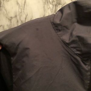 This windbreaker in good condition but has a small mark on the shoulder seen in pictures. Comes from a smoke free home.