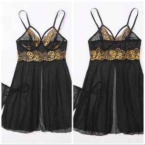 Brand new black & gold sheer lace babydoll slips with thong
